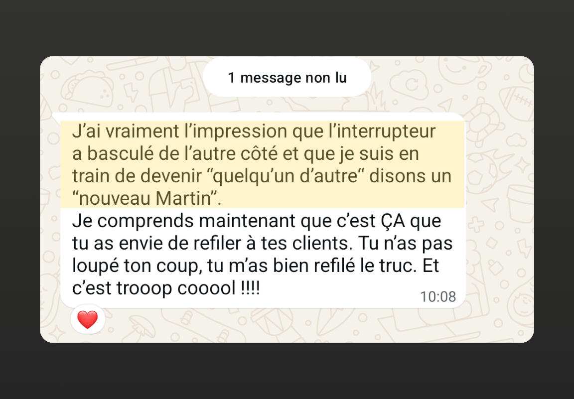 Un système éprouvé, un coaching personnalisé et des outils qui transforment tes efforts en résultats durables. Déjà validé par 1100+ personnes.