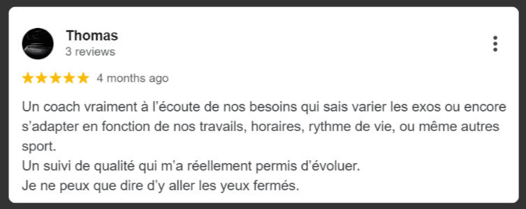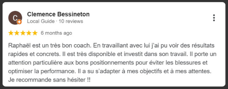 "Raphaël est le meilleur coach que j'ai rencontré. Grâce à son coaching, j'ai perdu 12kg en 16 semaines et révélé mes abdos pour la première fois à 49 ans. Son expertise et son adaptation constante ont transformé mon corps de manière permanente."
