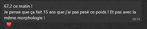 • A atteint la taille 36 pour la première fois de sa vie"Il m'a vraiment énormément aidée, grâce à lui j'ai repris confiance en moi ce qui n'était pas gagné ! Mon corps a véritablement changé, je suis vraiment ravie !"Émilie Façon - 36 ans & mère de 2 enfants